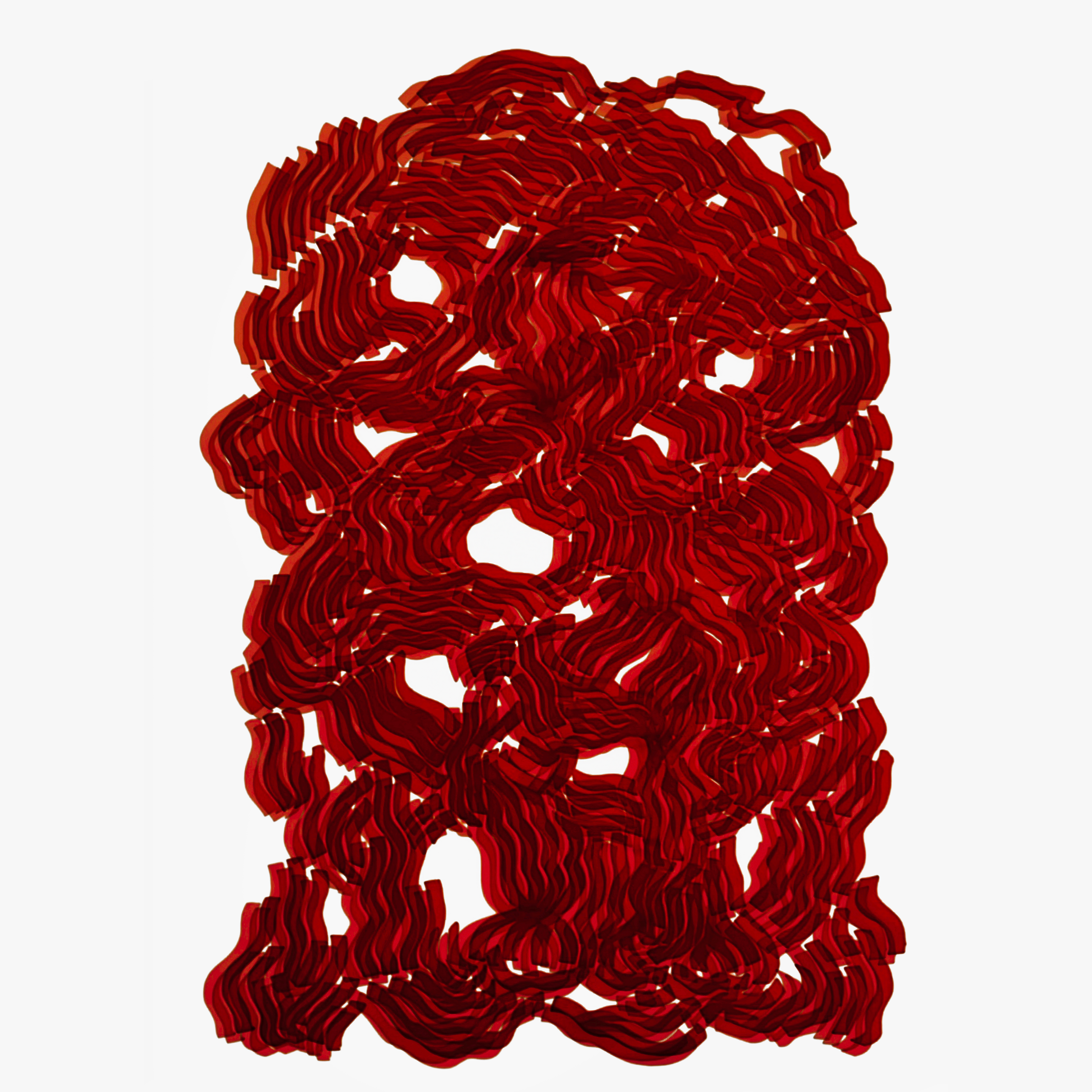 Sanatçının lif sanatı ve özgün tekstil baskılar alanında kurduğu görsel dil, teknikten yola çıkarak bedensel, zihinsel ve materyal bir diyaloğa dönüşüyor. Baskı yüzeyler üzerinde şekillenen soyut imgeler, yalnızca estetik bir kompozisyon değil; aynı zamanda bir düşünme pratiği. Her bir yüzey, doku ve baskı, sanatçının malzemeyle birlikte yürüdüğü, yönsüz ama dikkatli bir keşif rotası olarak beliriyor. Transparan ve opak kumaş yüzeyler üzerine uygulanan şablon baskı (ipek baskı), video ve ışık yerleştirmeleri, ip ve sünger gibi malzemeler ile gerçekleştirilen üretimler, belirli performatif bir iznin verilmesi sonucu olarak ortaya çıkıyor.