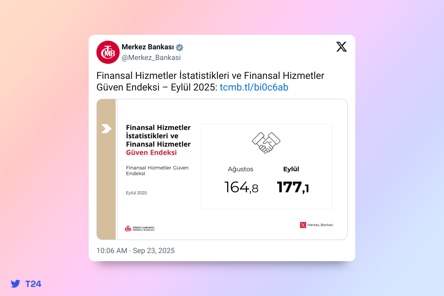 Türkiye Cumhuriyet Merkez Bankası, eylül ayına ilişkin Finansal Hizmetler İstatistikleri ve Finansal Hizmetler Güven Endeksi’ni açıkladı.