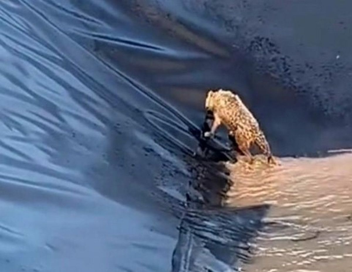 Durumu fark eden bölgede çalışan işçiler, kurdun havuzdan çıkmak için verdiği mücadeleyi cep telefonu kameralarıyla kaydetti. Görüntülerde, kurdun panik halinde havuz kenarlarına tırmanmaya çalıştığı anlar yer aldı.